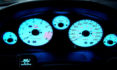 Set Tachozifferscheiben beleuchtet inklusive Regler für Lichtstärke und Farbe, sowie Einbauanleitung. Mazda MX-5 NB und NBFL von 1998 bis 2005